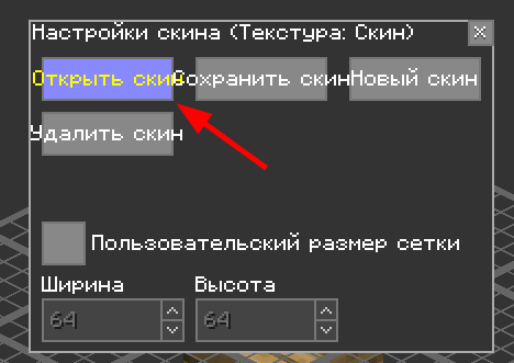выберите Открыть скин, и найдите там файл (картинку) вашего скина